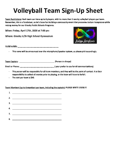 Join us on Friday, April 17th at 7pm in the GJSHS Gym for the Autism Acceptance Volleyball Tournament!